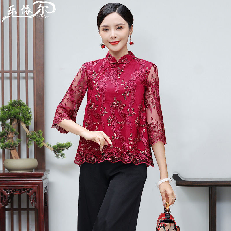Setelan Cheongsam bordir atas musim semi dan musim panas, setelan Tang usia sedang dan orang tua, pakaian pernikahan ibu gaya China kelas atas