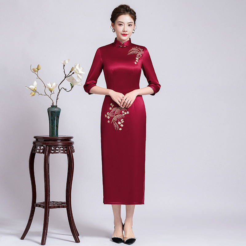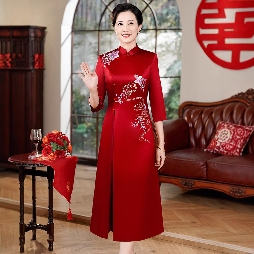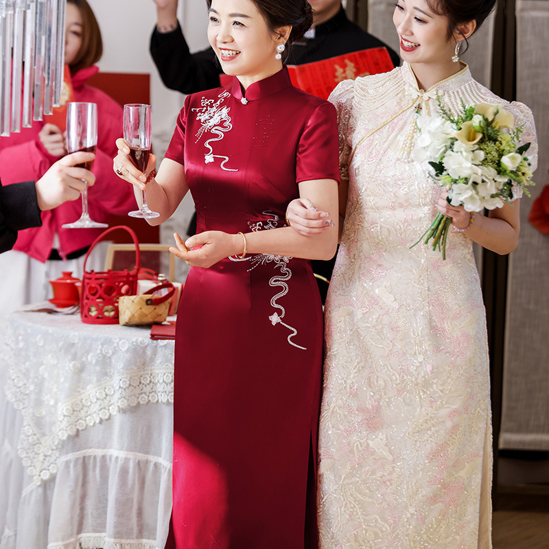 Gaun Pesta Pernikahan Ibu mertua Model Baru 2025 Gaun Ibu Muda Sulaman Asam Asetat Gaun Cheongsam Modifikasi 60700