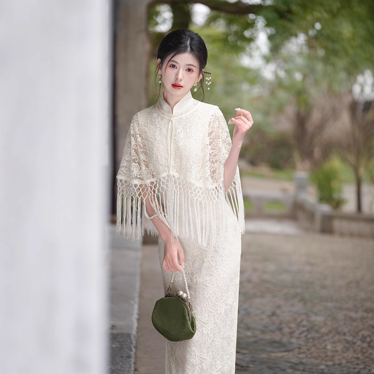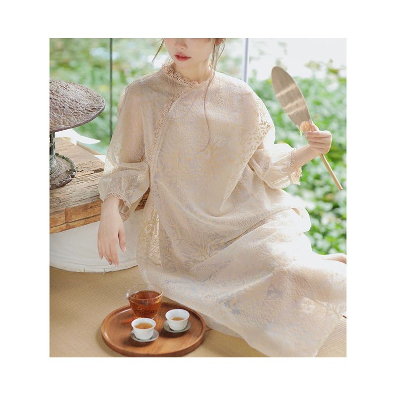 Gaun cheongsam longgar renda gaya Barat modifikasi Cina retro baru musim semi dan panas 2024
