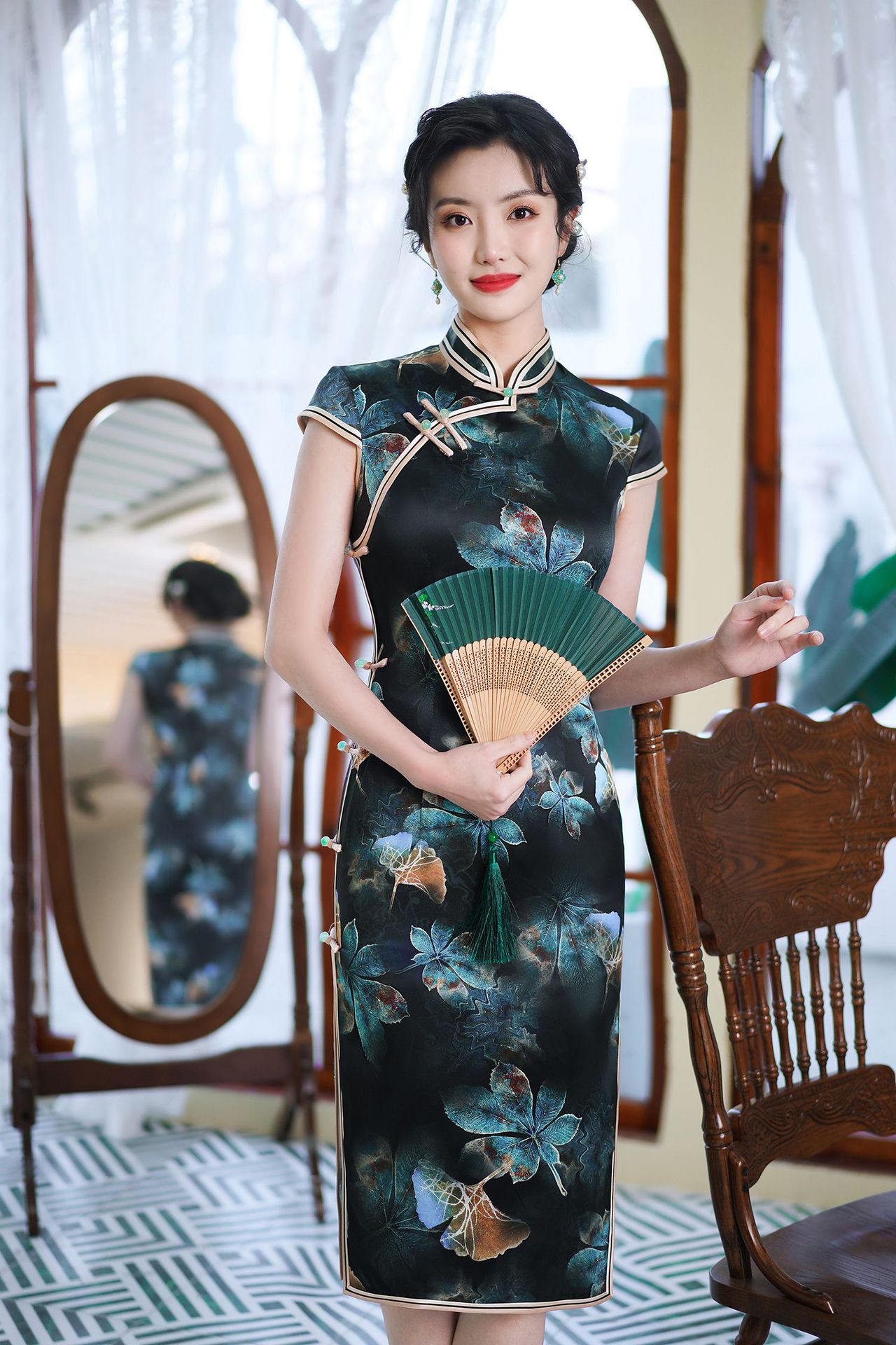 Gaun cheongsam musim panas 2025 yang ditingkatkan, lengan pendek kasual, gaya Cina baru, potongan ramping, warna hijau