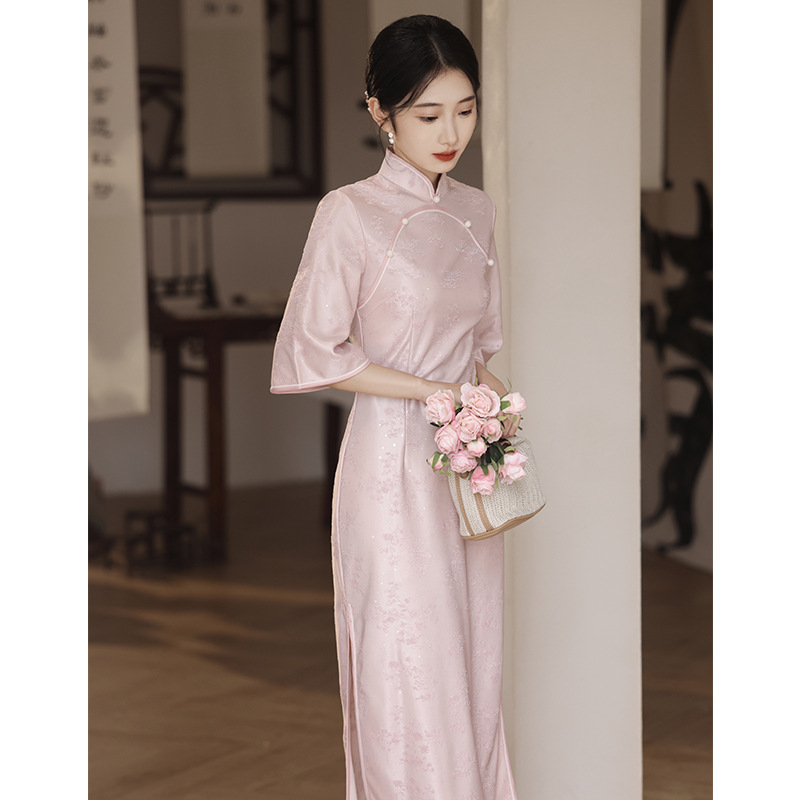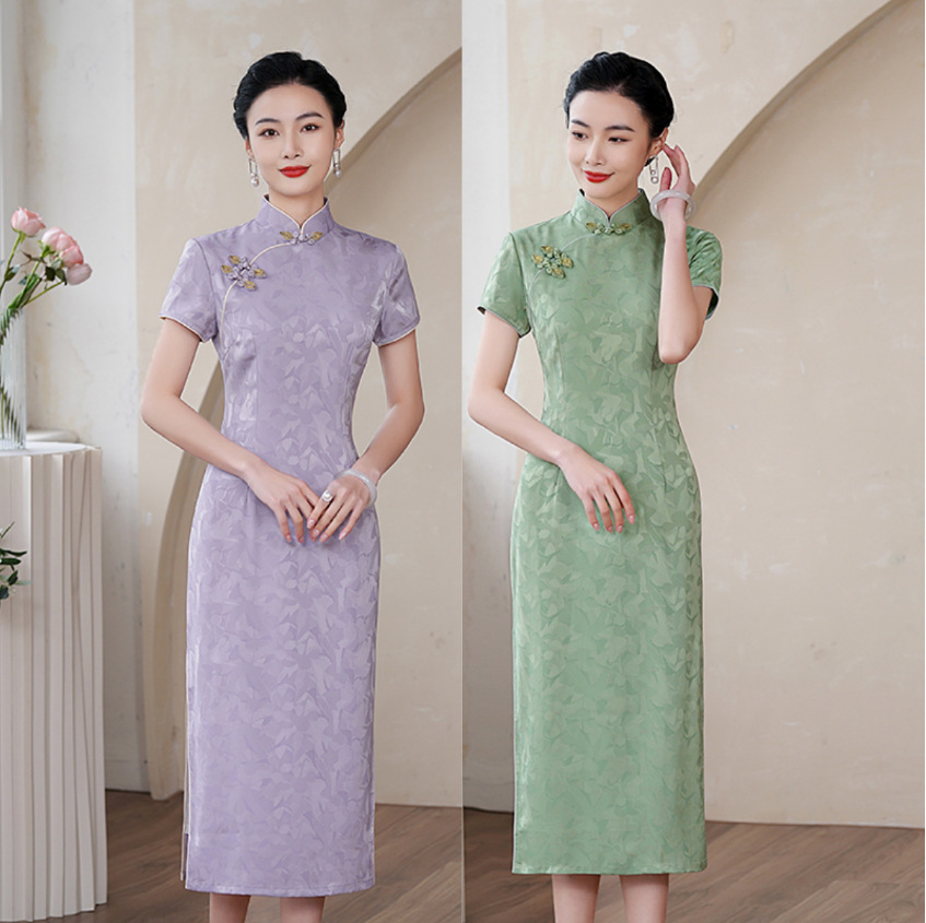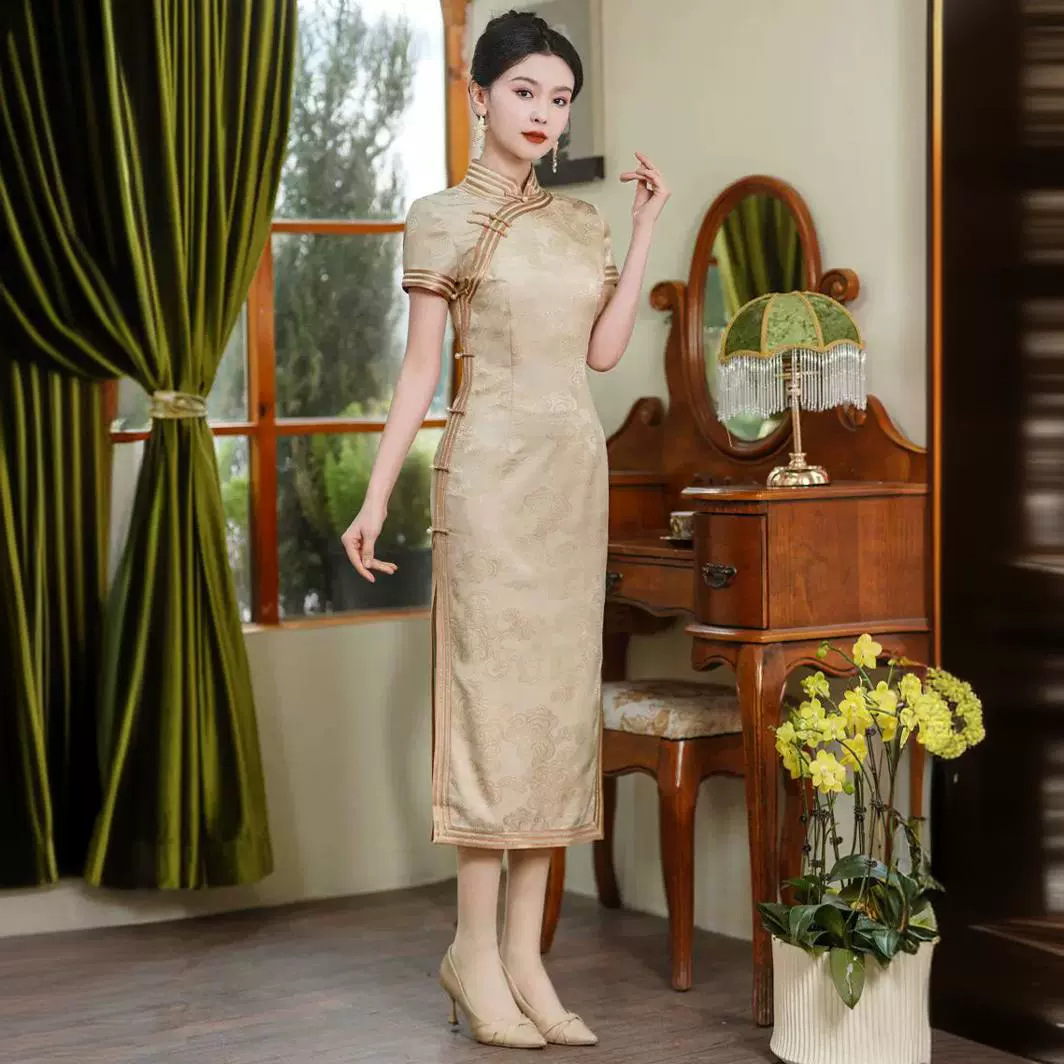 Gaun panjang cheongsam sutra wanita, gaun cheongsam panjang peningkatan harian gaya Cina baru 2023