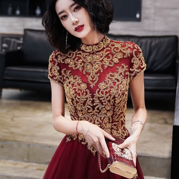 Gaun pengantin gaya Tiongkok, gaun malam kecil wanita, pakaian pernikahan, temperamen Ratu cheongsam, gaun pengantin