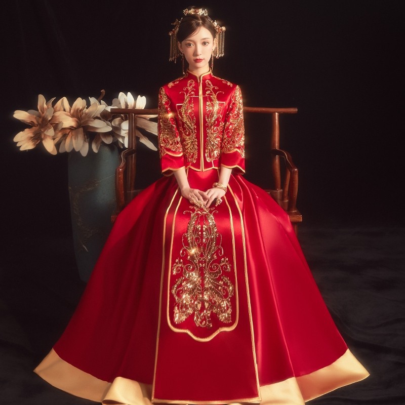 Pakaian Xiuhe Baju Cheongsam Merah Model Baru Pakaian Bersulang Gaya Tiongkok Baru Model Baru Pengantin Wanita Gaun Pertunangan Pernikahan Kelas Tinggi Wanita
