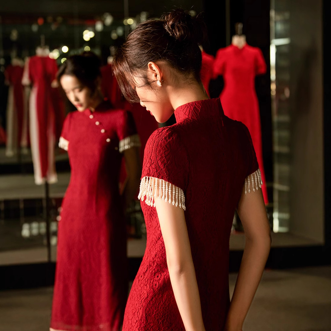 Gaun pengantin wanita, Gaun jamuan tuan rumah, Gaun malam pertunangan, temperamen pernikahan cheongsam