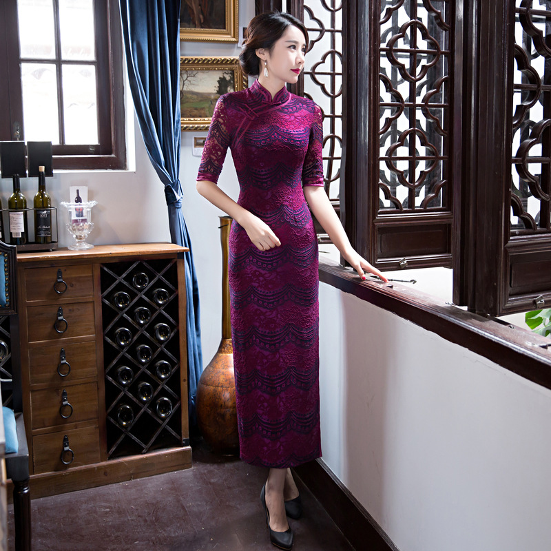 Gaun cheongsam beludru retro gaya Tiongkok, gaun cheongsam panjang ditingkatkan untuk pernikahan musim dingin 2020