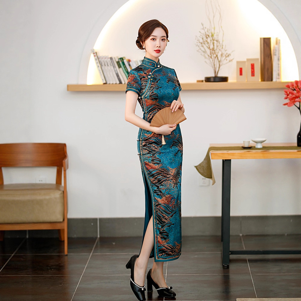2022 baru musim gugur dan musim dingin dipertebal panjang elegan gaya Cina ibu kinerja cheongsam catwalk elegan ukuran besar wanita