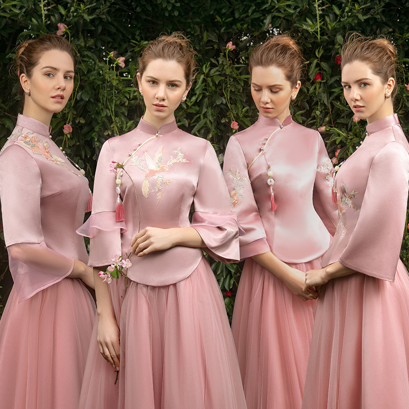 Gaun pengiring pengantin tiongkok 2024, gaun bersulang panjang baru, gaun malam pernikahan, baju cheongsam grup pengiring pengantin wanita musim semi