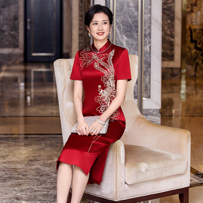 Gaun pernikahan Happy mother-in-law, gaun pernikahan musim semi baru 2024, gaun panggang cheongsam Noble Phoenix slim fit