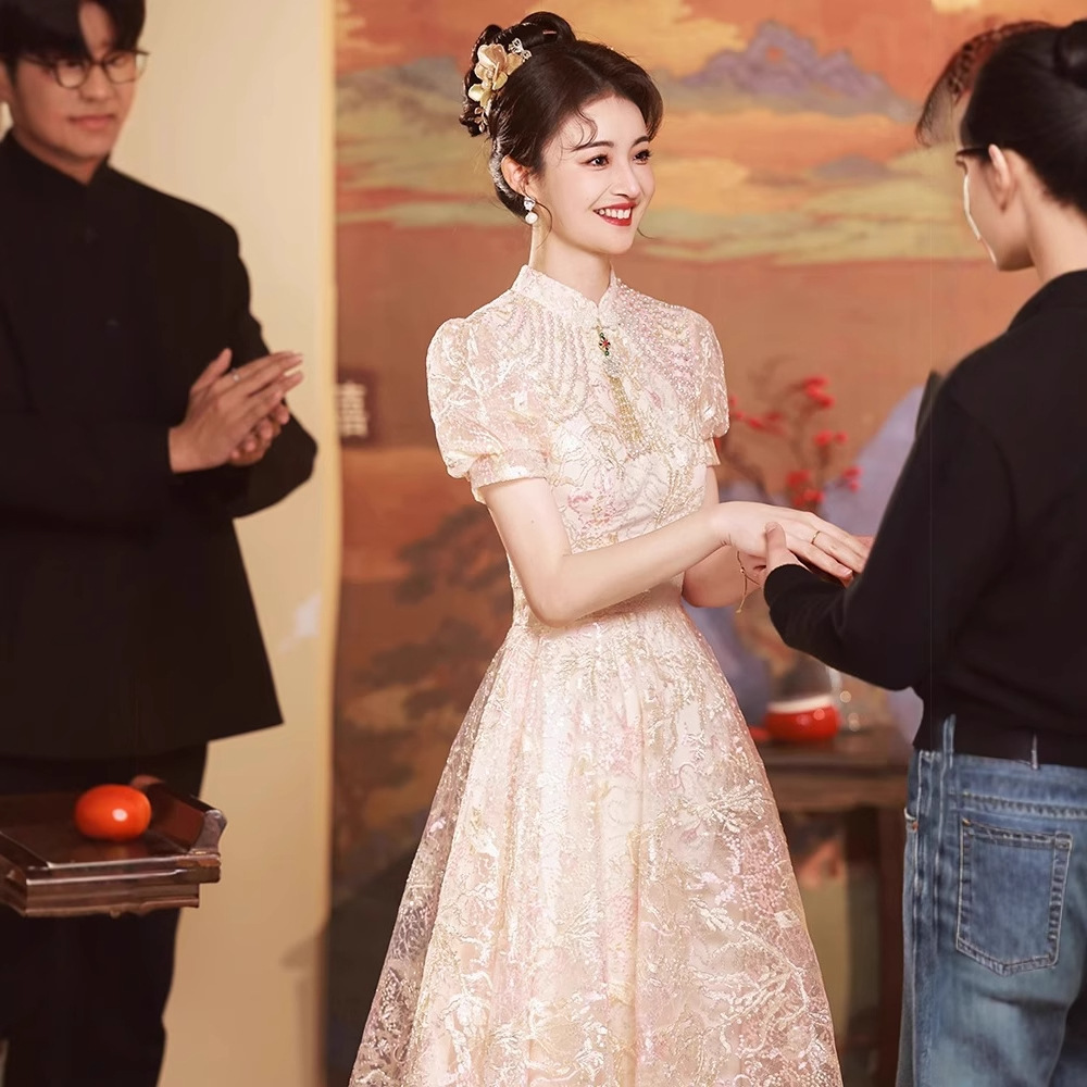Cheongsam Pakaian Bersulang Pengantin Wanita Model Baru Musim Panas 2025 Gaun Pernikahan Pertunangan Gaya Tiongkok Baru Musim Panas Wanita Pakaian kasual pintu belakang