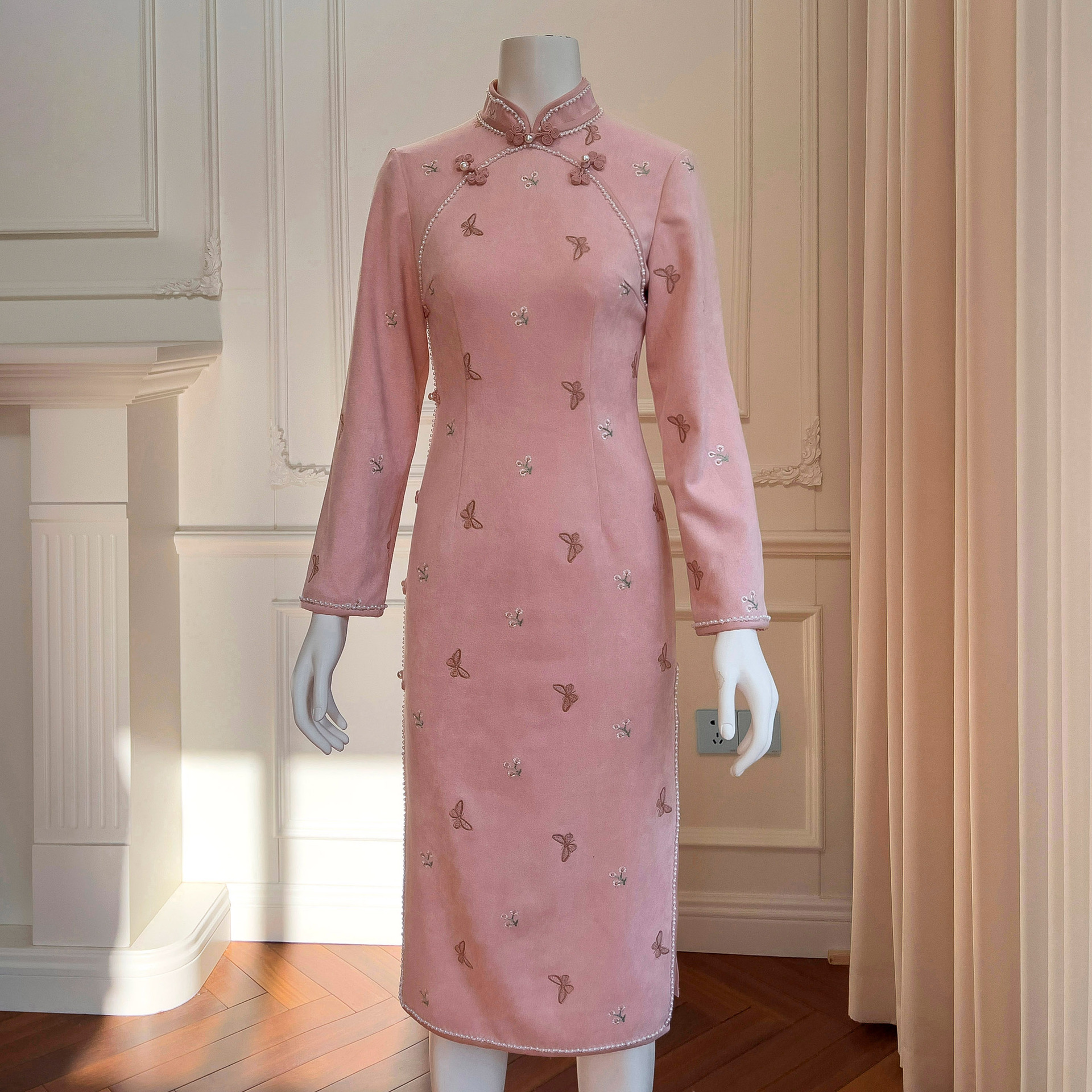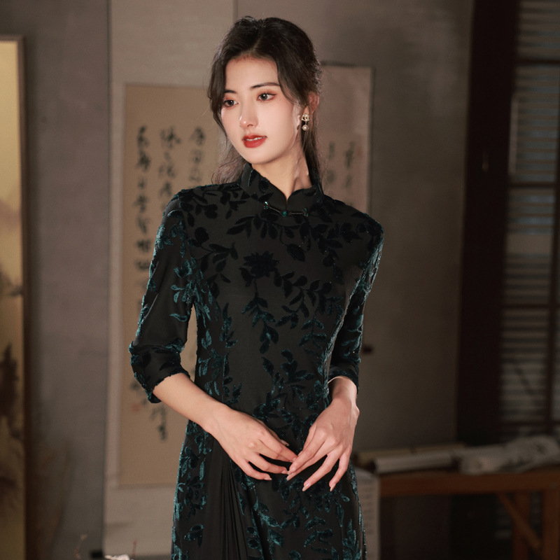 Gaun perjamuan gaya nasional retro, gaun cheongsam panjang bersulang pernikahan musim gugur dan musim dingin 68336