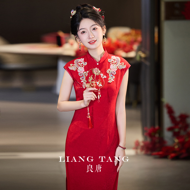 Gaun pernikahan setelan cheongsam muda ditingkatkan, Gaun Tang temperamen ramping kelas atas musim semi musim gugur dan musim dingin baru