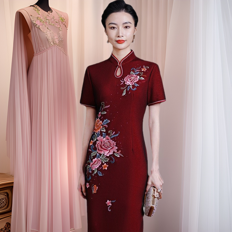 Gaun ibu bordir gaya Barat kelas atas tiga dimensi gaun jamuan makan Pernikahan gaun pernikahan cheongsam mulia elegan bahagia mertua gaun pernikahan musim semi dan musim gugur