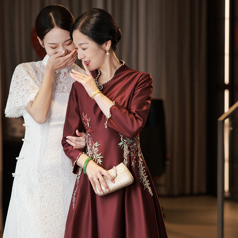 Gaun pernikahan Happy mother-in-law 2024 baru bordir asetat gaun pernikahan cheongsam muda gaya Barat 22D112