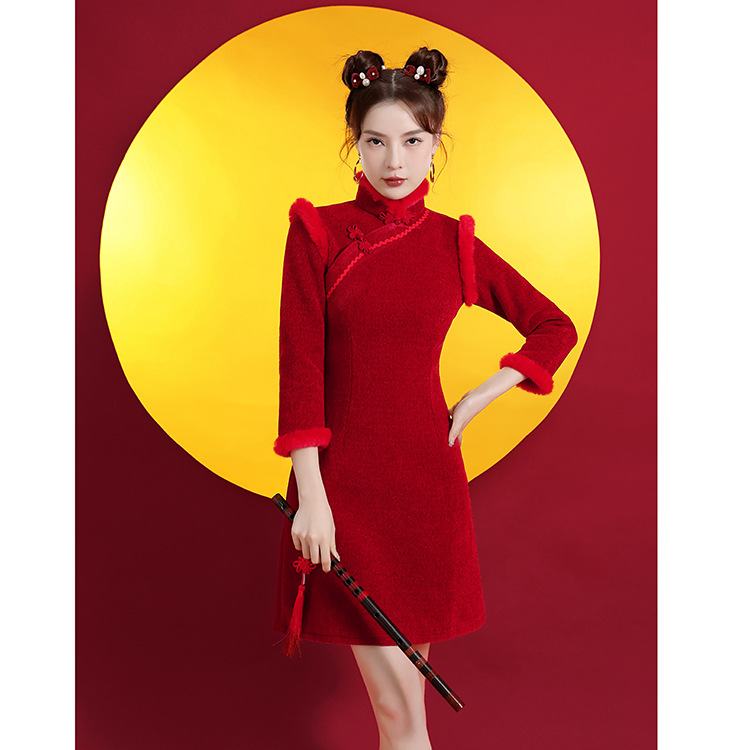 Gaun cheongsam muda musim gugur, baju ucapan Tahun Baru, retro, sehari-hari, pendek, baru, 2023