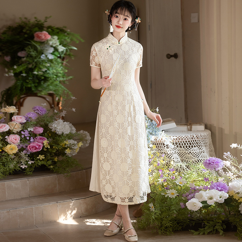 Gaun cheongsam putih yang indah untuk wanita gaya Tiongkok baru 2024 gaya Republik Tiongkok temperamen retro panjang Shanghai muda