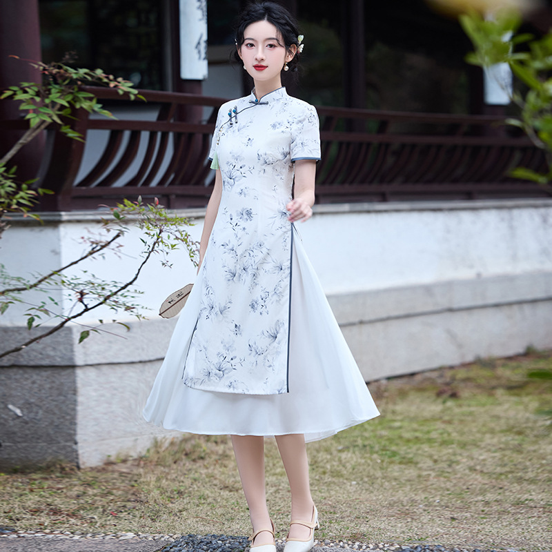 Gaun cheongsam kecil modifikasi muda pakaian wanita baru musim panas 2024 Gaun Tinggi slim fit 5811