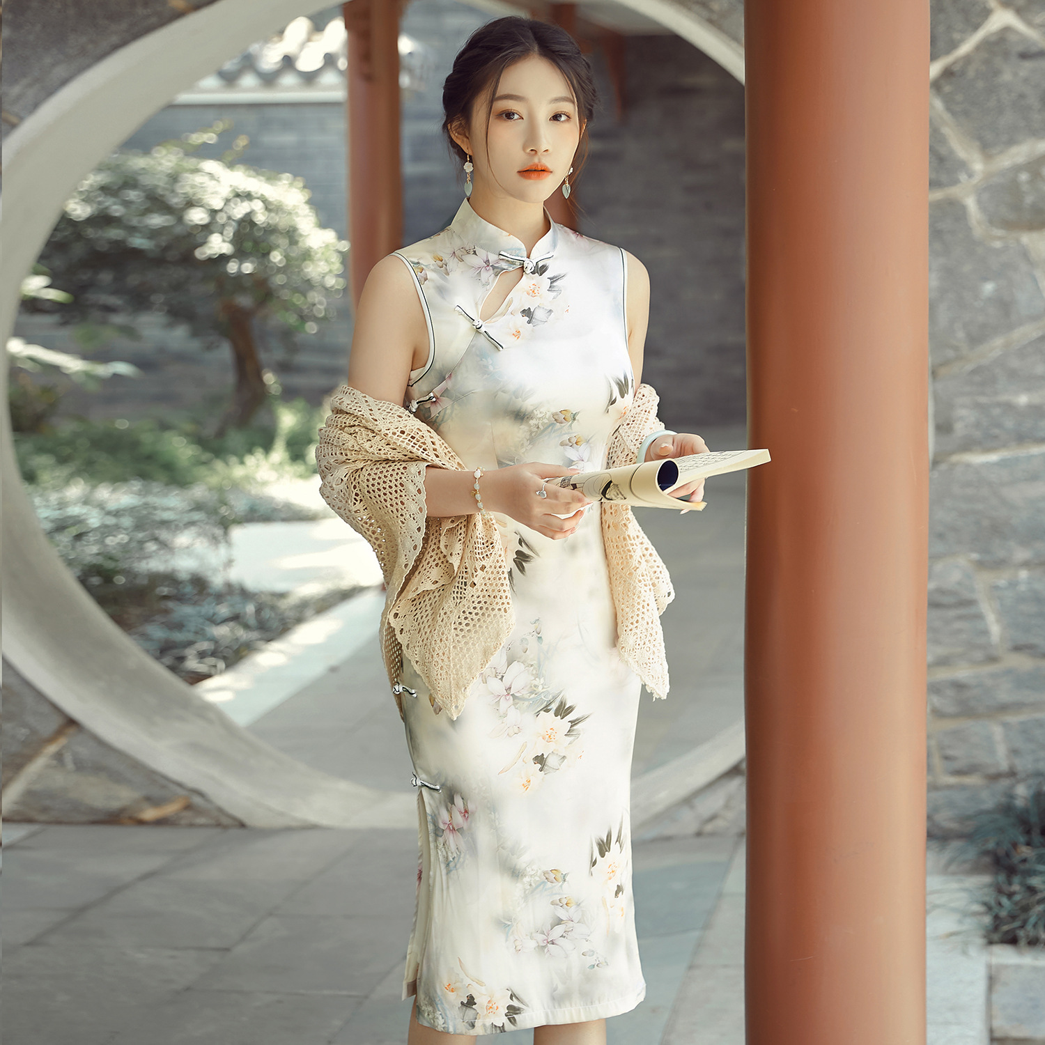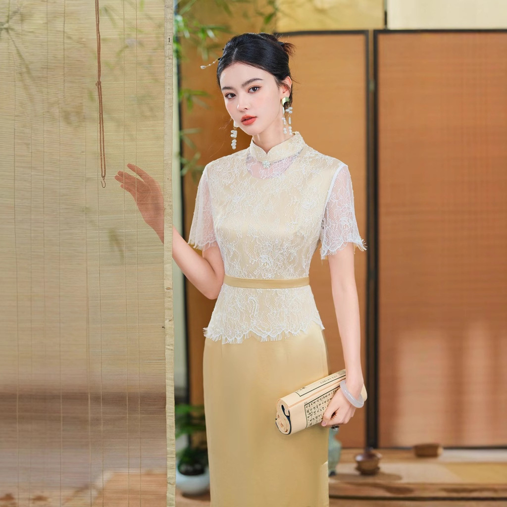 Gaun cheongsam berenda berongga gaya nasional musim panas, mode baru mewah ringan, gaun elegan gaya Cina baru model ZX N5025