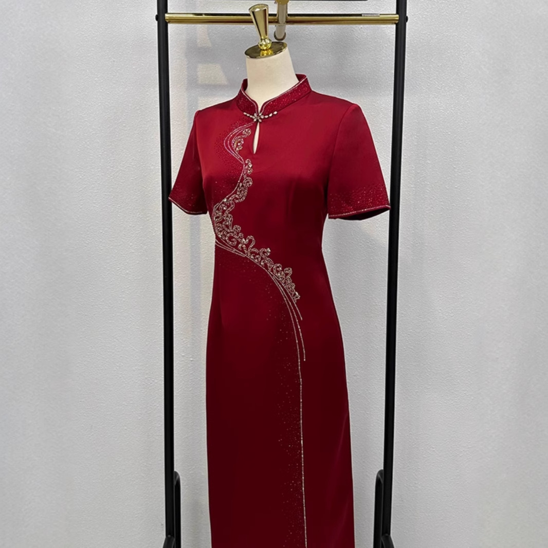 Gaun pengantin Cheongsam, gaun ibu ibu ibu 2024, gaun retro cheongsam ditingkatkan ukuran besar