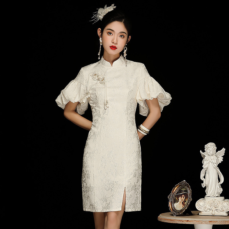 Gaun putri lengan puff floral sifon gaun cheongsam muda modifikasi baru Musim Panas 2024 230216