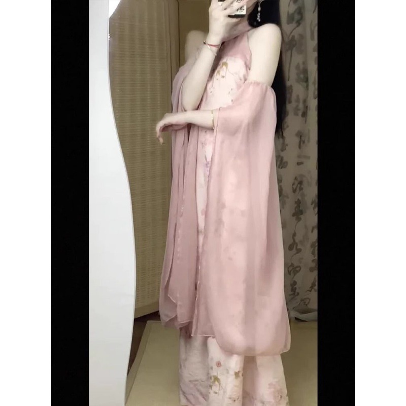 Gaun pertunangan cheongsam ditingkatkan gaya Tiongkok, gaun halter merah muda mewah kelas atas musim gugur dan musim dingin untuk wanita