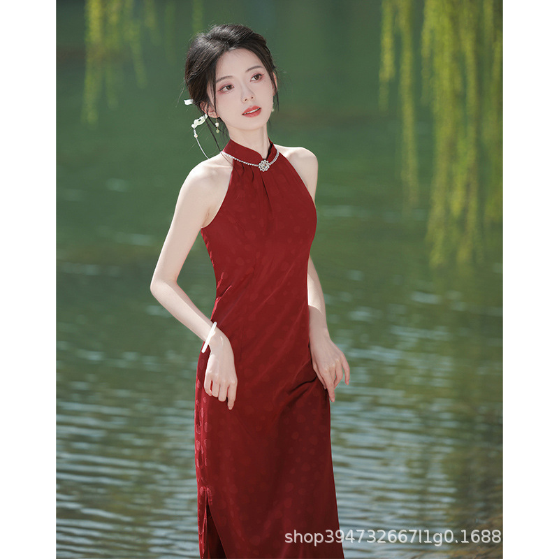 Gaun bersulang cheongsam ditingkatkan pengantin wanita pernikahan merah Tiongkok rasa tinggi 2024 gaun pertunangan baru musim panas wanita