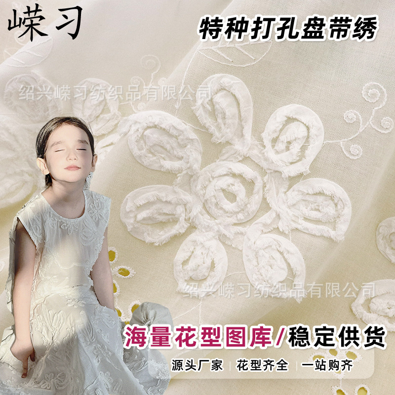 45 Jenis Mantel Katun Berlubang Khusus dengan Kain Bordir, Kemeja Musim Semi dan Musim Panas Hati, Pakaian Pria dan Wanita, Pakaian Anak-anak Kain Bunga Stereo