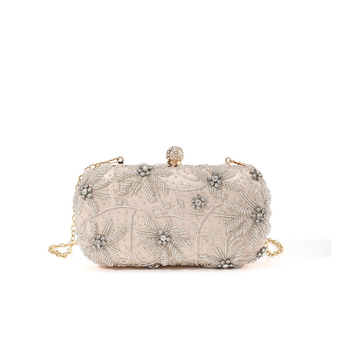 Tas Pesta Malam Berlian Imitasi Retro Eropa dan Amerika Lintas Batas Tas Jongsam Pengantin Wanita Bertatah Berlian Manik-Manik Bordir Tiga Dimensi Buatan Tangan Tas Genggam Wanita
