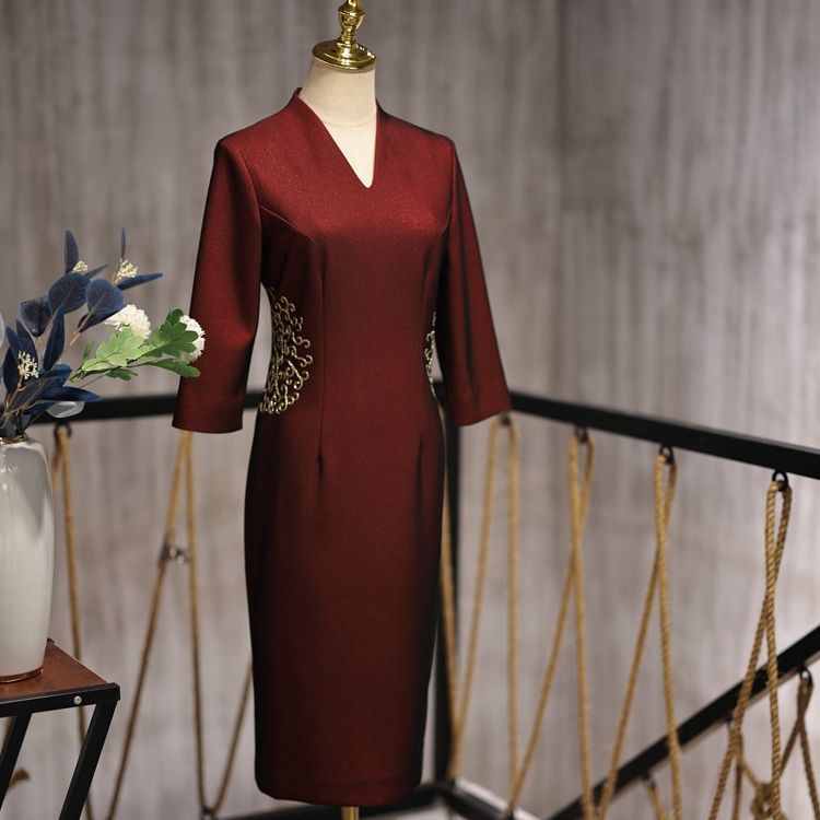 Cheongsam leher V untuk Ibu musim gugur dan musim dingin baru 2023 gaun jamuan pernikahan lengan 3/4 ditingkatkan hukum ibu bahagia Tahun Baru