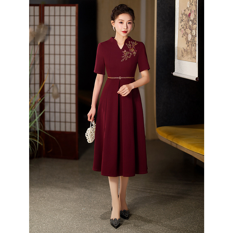 Gaun pernikahan cheongsam ibu muda 2024 musim semi dan musim panas baru gaun pernikahan ibu mertua 60641 harian mulia