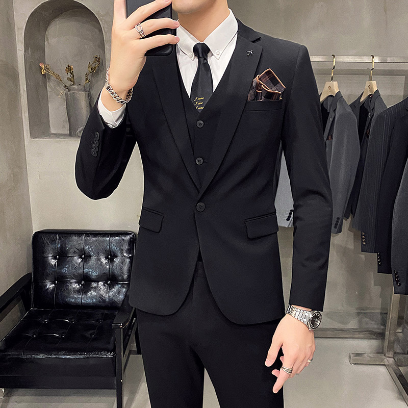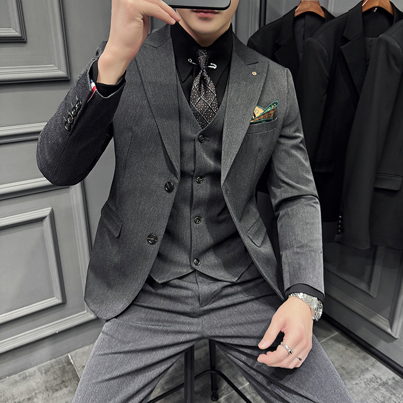 Setelan Jas Pria Set Tiga Potong Gesper Ganda Setelan Jas Formal Profesional Bisnis Setelan Gaya Korea Slim Fit Pengiring Pengantin Pria