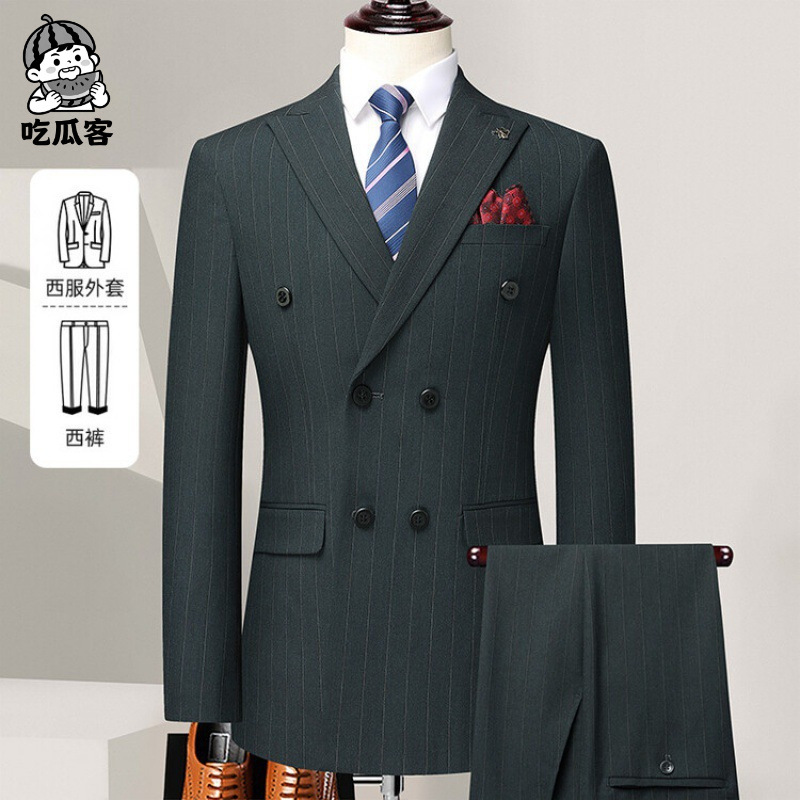 Setelan jas pria 2025 musim semi dan gugur, model double-breasted untuk bisnis dan pernikahan, pakaian pengantin pria kelas atas