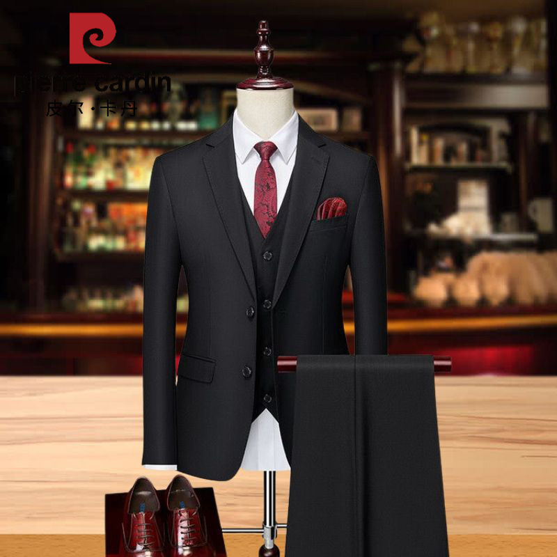 Setelan jas pria tiga potong untuk musim semi dan gugur, pakaian formal pengantin pria slim-fit kasual bisnis untuk pria muda.