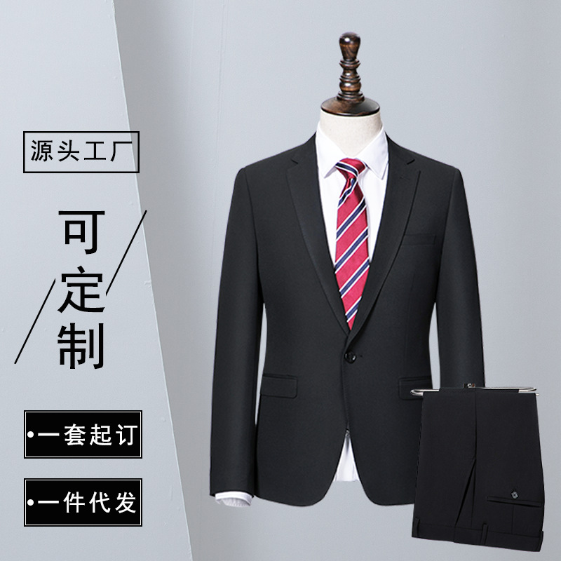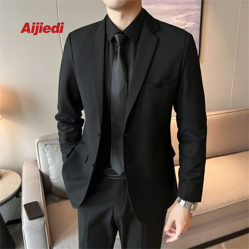 Setelan Jas Bisnis Warna Hitam Pria Versi Korea Setelan Jas Kasual Satu Gesper Gaun Pengantin Pria Setelan Jas Profesional