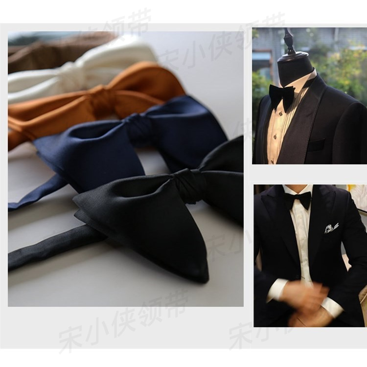 Setelan tuksedo pria, dasi kupu-kupu besar warna polos Korea kasual klakson pengantin kamar busur hitam anggur merah putih