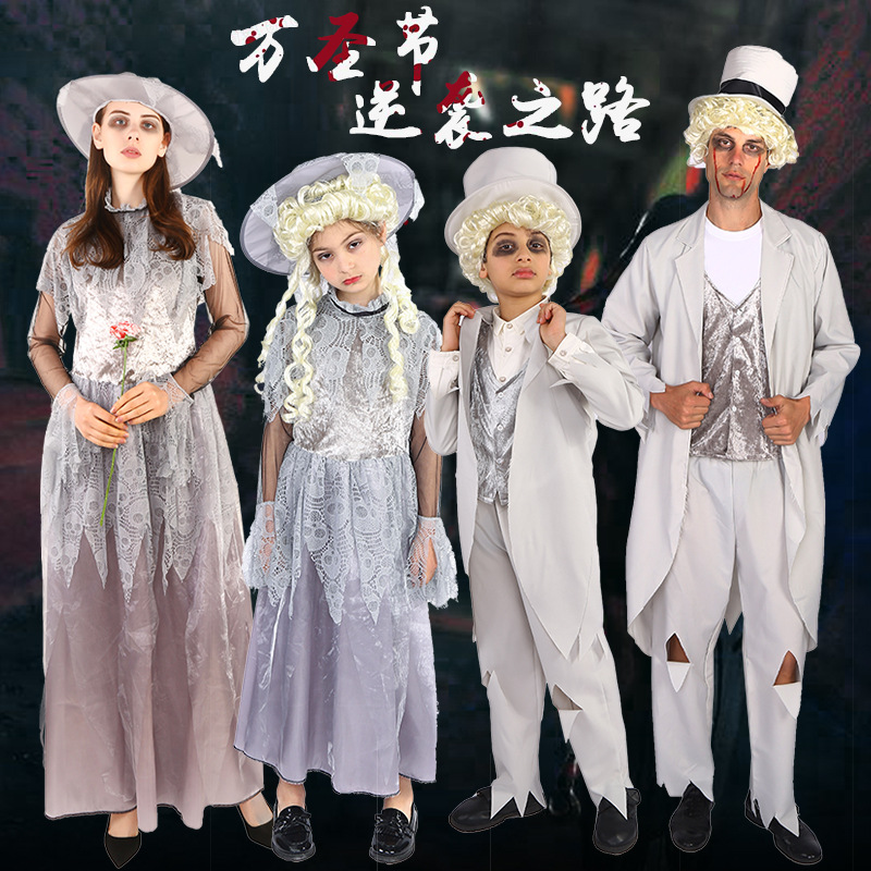 Kostum Halloween Dewasa pakaian vampir pakaian pengantin hantu kostum pengantin pria
