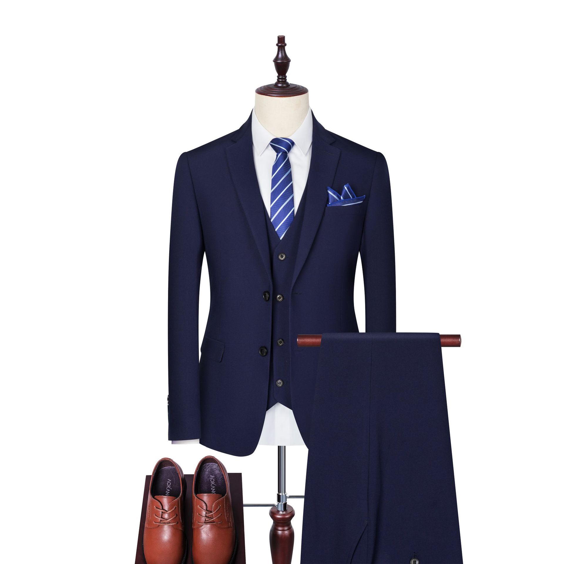 Setelan Jas Pria Setelan Tiga Potong Slim Fit Versi Korea Setelan Bisnis Pengantin Pria Pakaian Formal Profesional Dua Kancing Pakaian Formal Biru Tua Setelan Pria