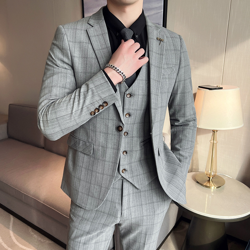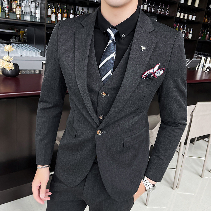 Pakaian Pria Perdagangan Luar Negeri Pakaian Pria Gaya Korea Gaun Pengantin Pria Setelan Tiga Potong Kasual Warna Solid Setelan Satu Kancing Pria Empat Musim