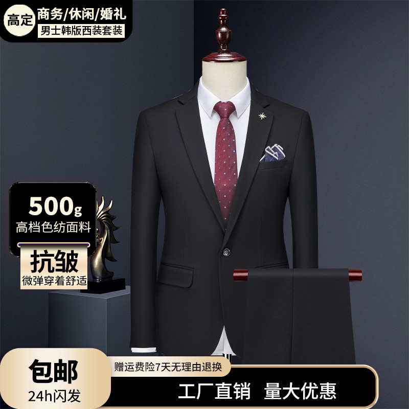 Setelan bisnis pria, pakaian 9825 gaya Korea slim fit dua buah Set lengkap kasual pernikahan pengantin pria gaun