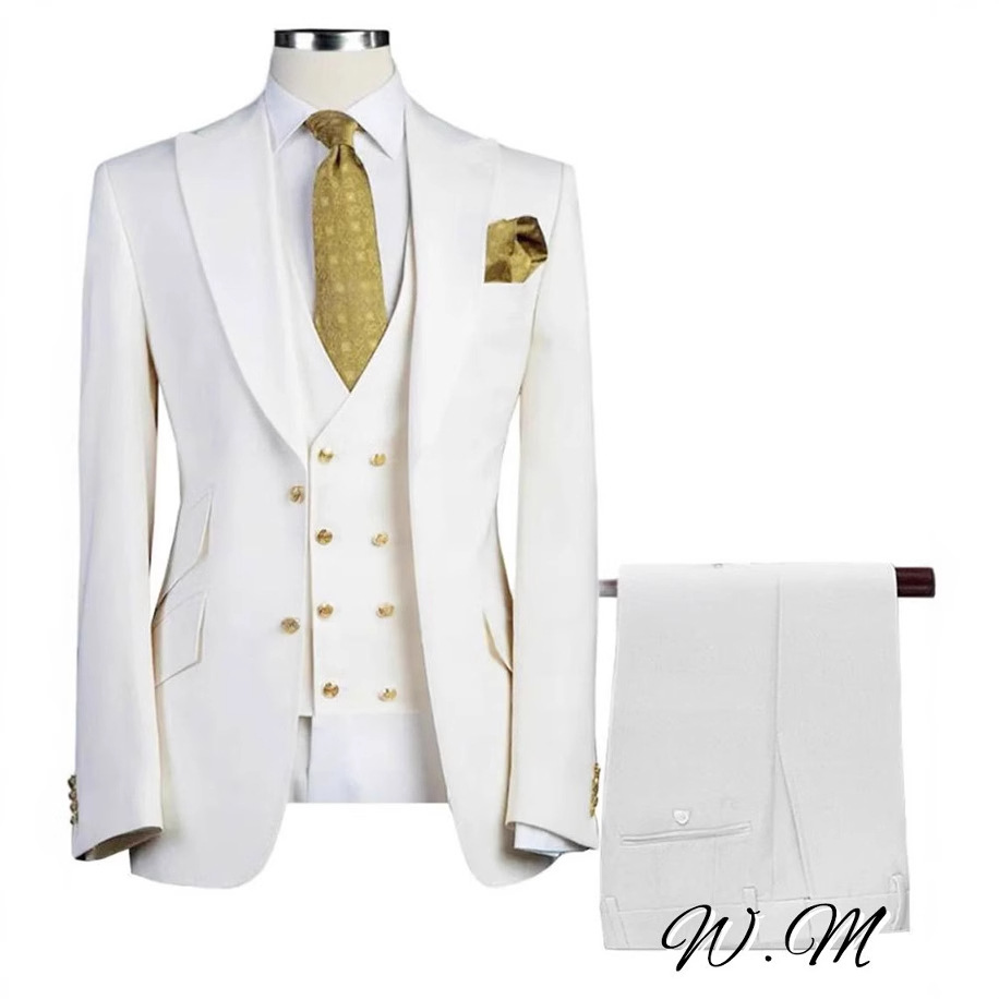 Setelan pakaian kasual mempelai pria, setelan 3 potong 2024 putih ukuran besar bisnis perdagangan luar negeri pria terbaik setelan banquet Pernikahan pria