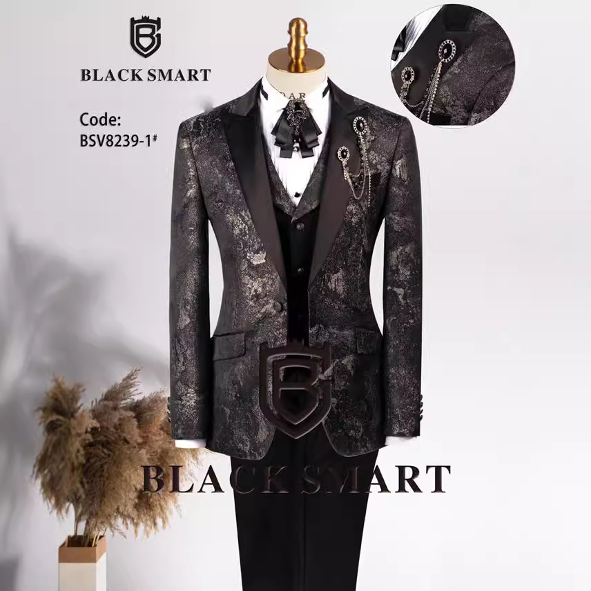 Gaun pernikahan jacquard high-end pria baru musim gugur dan musim dingin 2023 setelan pengantin pakaian studio pernikahan tiga potong modis