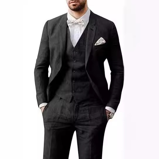 Setelan pakaian pria, gaun linen pas badan musim panas pernikahan vintage pengantin pria pesta perjamuan prom gaun setelan pesta