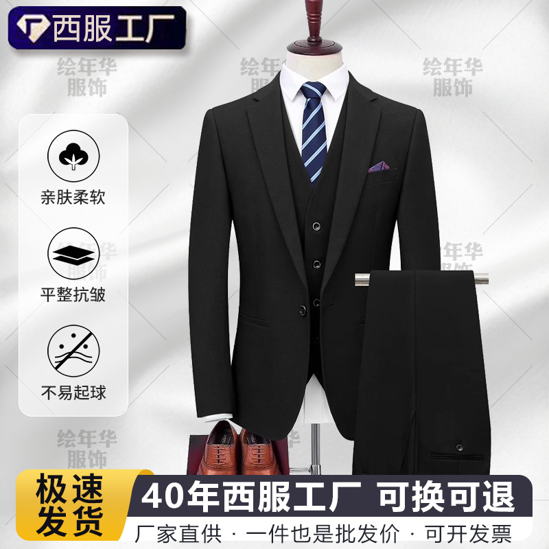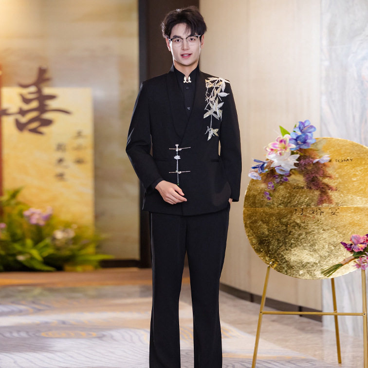 Setelan pakaian pernikahan pengantin pria, pakaian perdagangan luar negeri, gaun pengiring pengantin, tiga potong, model Korea, pakaian jamuan makan, untuk pria