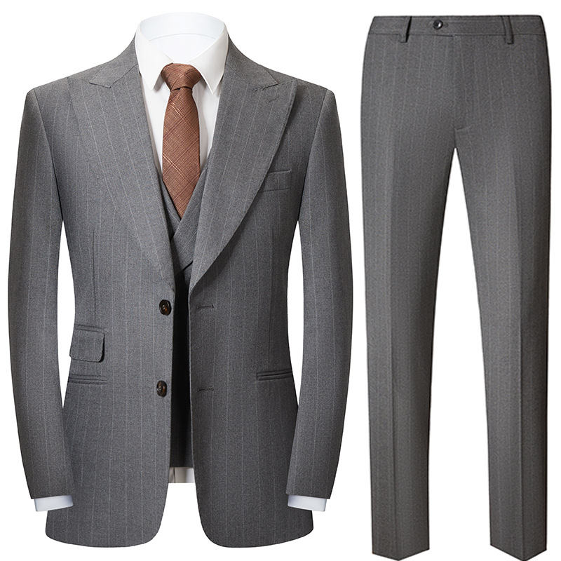 Setelan pakaian formal bisnis pria gaun pernikahan pengantin pas badan pakaian formal setelan tiga potong pakaian bergaris kasual gaya Inggris