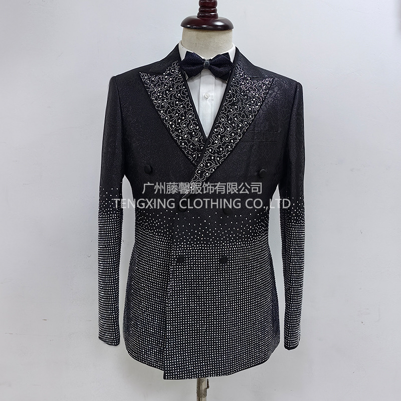 Kustom Grosir Berlian Panas Pernikahan Jas Pesta Pria Pakaian Tweet Pengantin Pria Slim-fit Suit