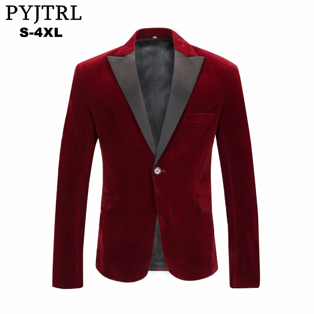 Setelan jaket beludru merah anggur pria, selendang kerah penyanyi pakaian penampilan pengantin pria, gaun tuan rumah