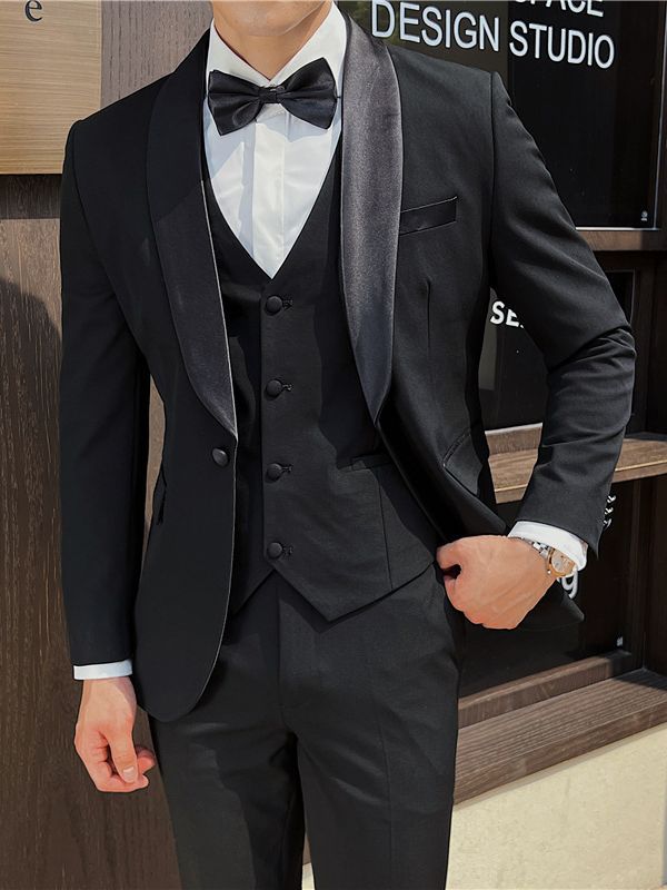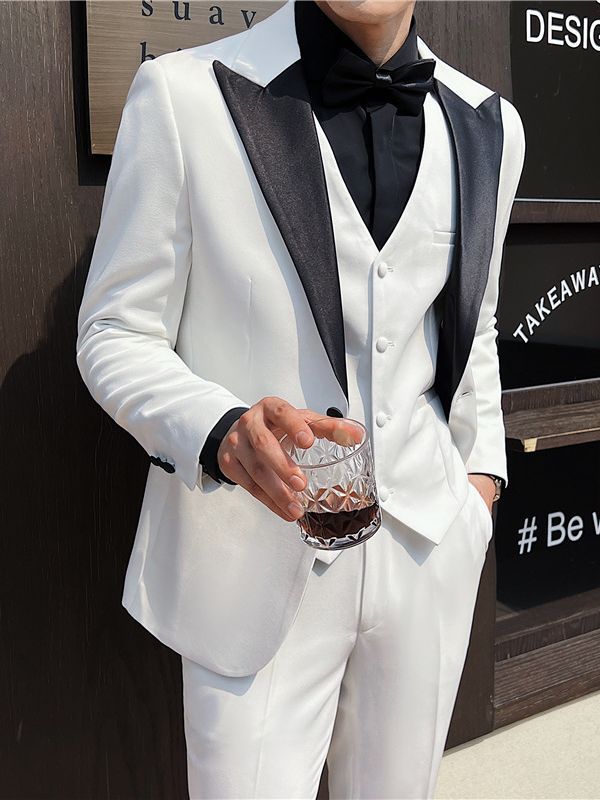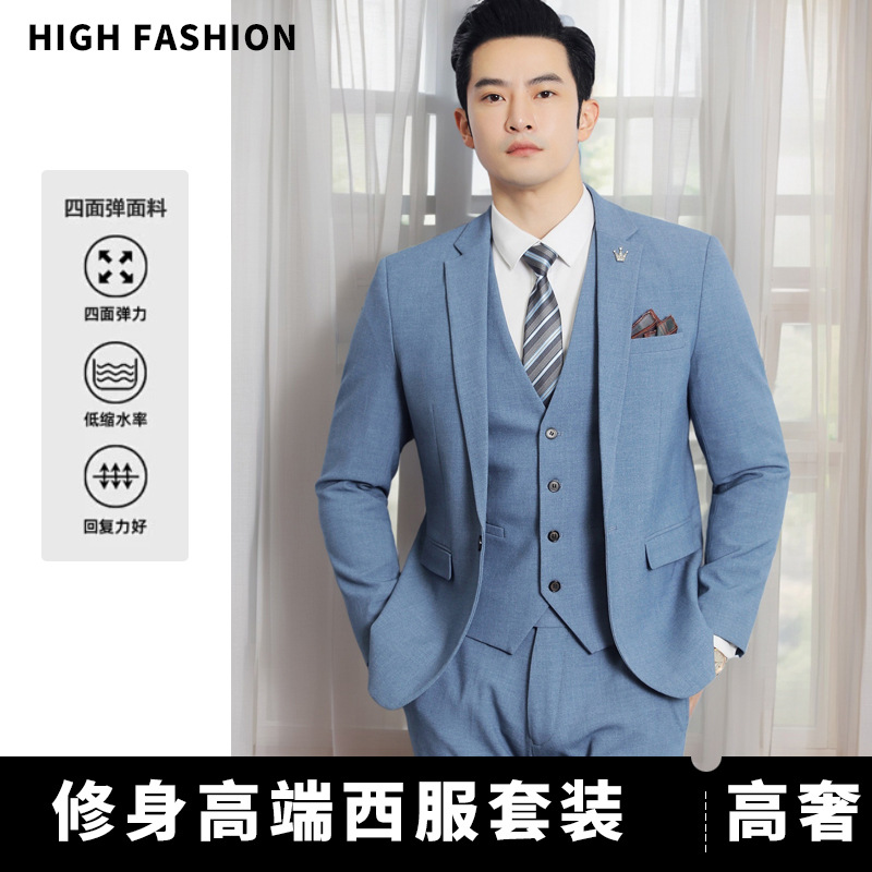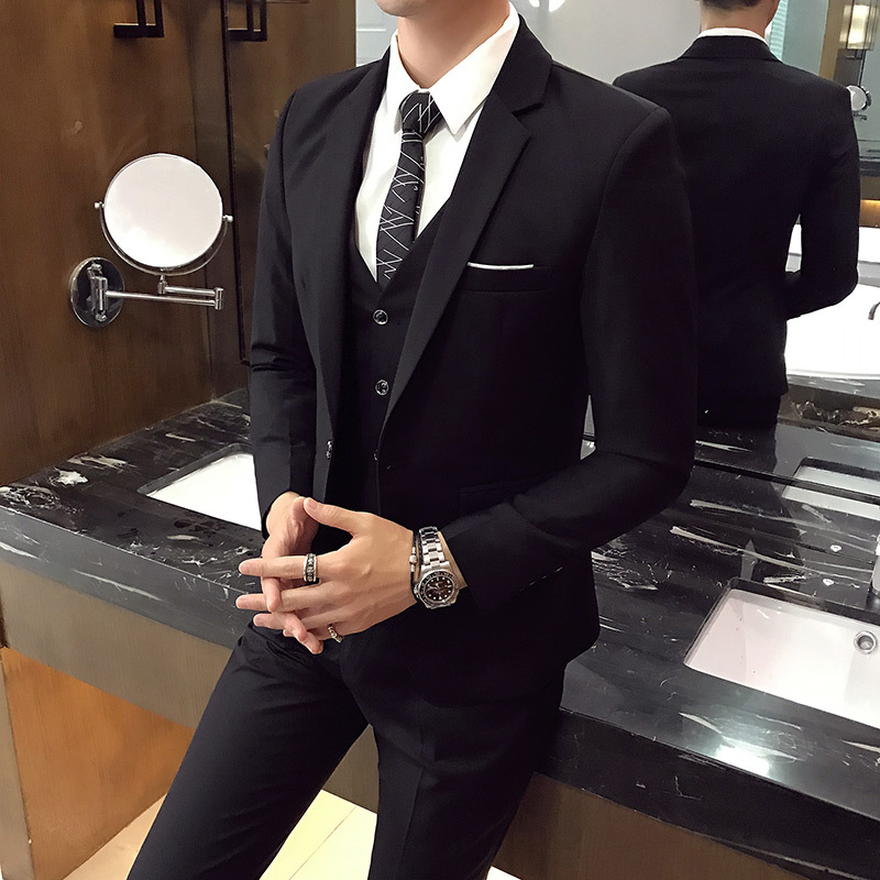 Setelan pakaian kasual pria tiga potong gaya Korea slim-fit gaun formal pengantin pria gaun pernikahan setelan kecil profesional Inggris