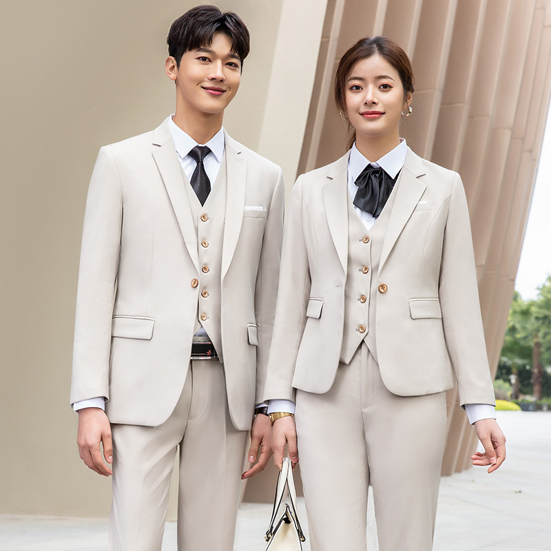 Setelan formal tiga potong pria wanita, setelan profesional sama, tiga potong, setelan bisnis ramping pengantin pria