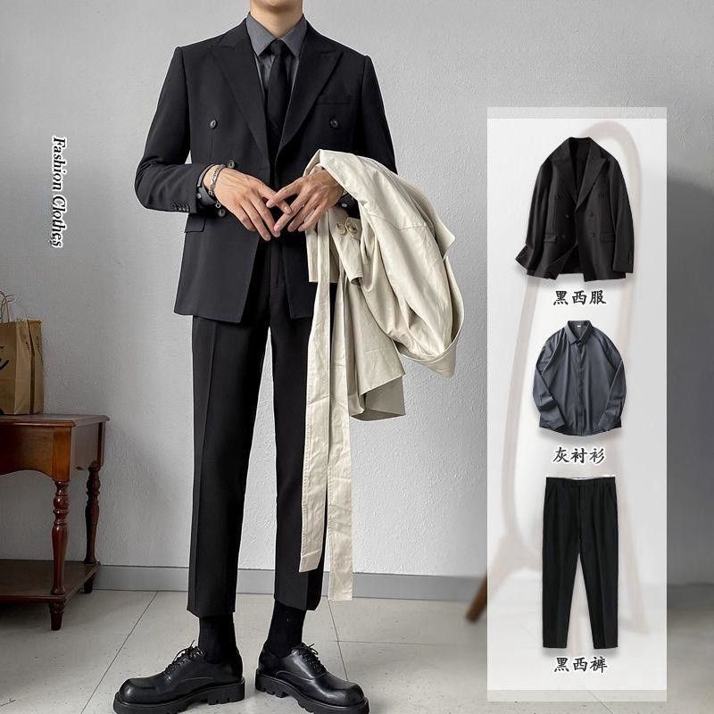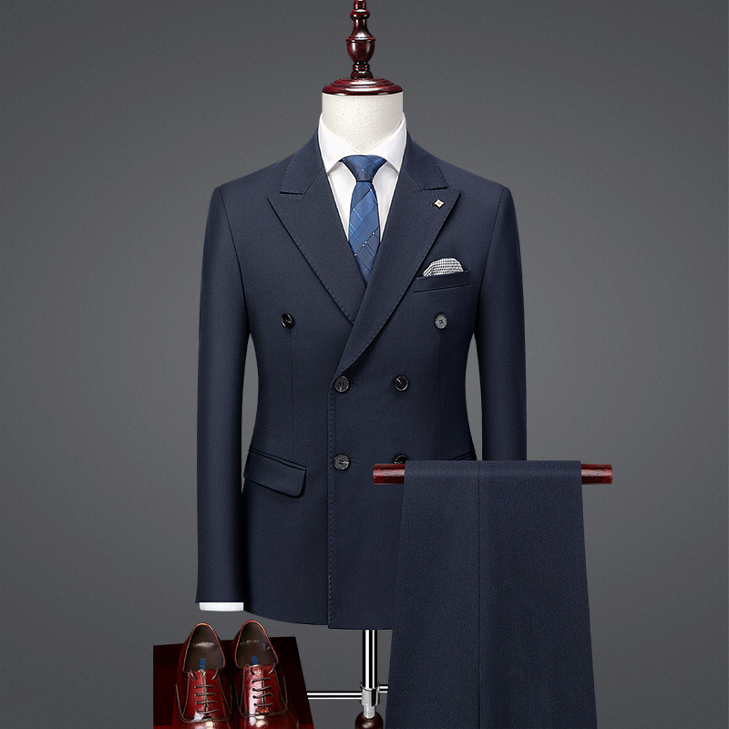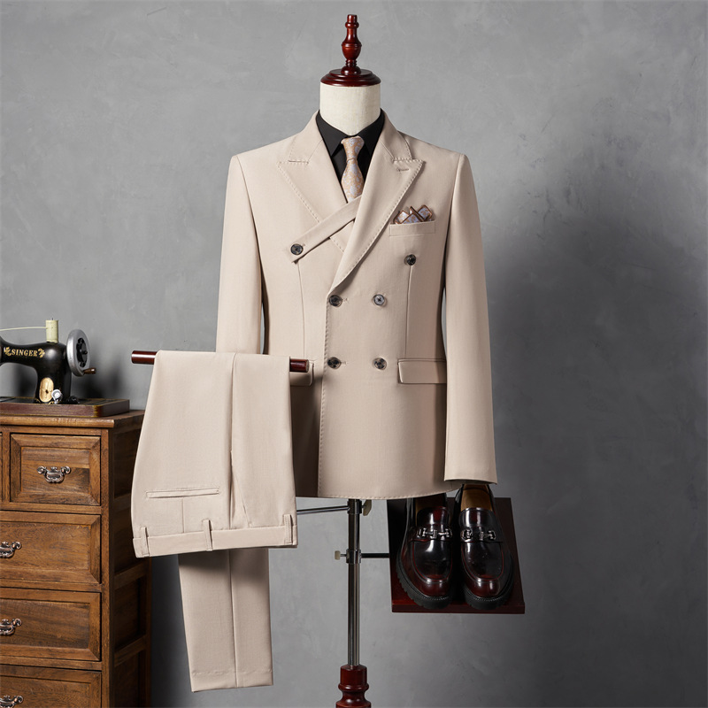 Setelan jas Double breasted untuk pria, setelan jas slim fit gaya Korea trendi pernikahan pengantin laki-laki gaya Inggris ukuran plus