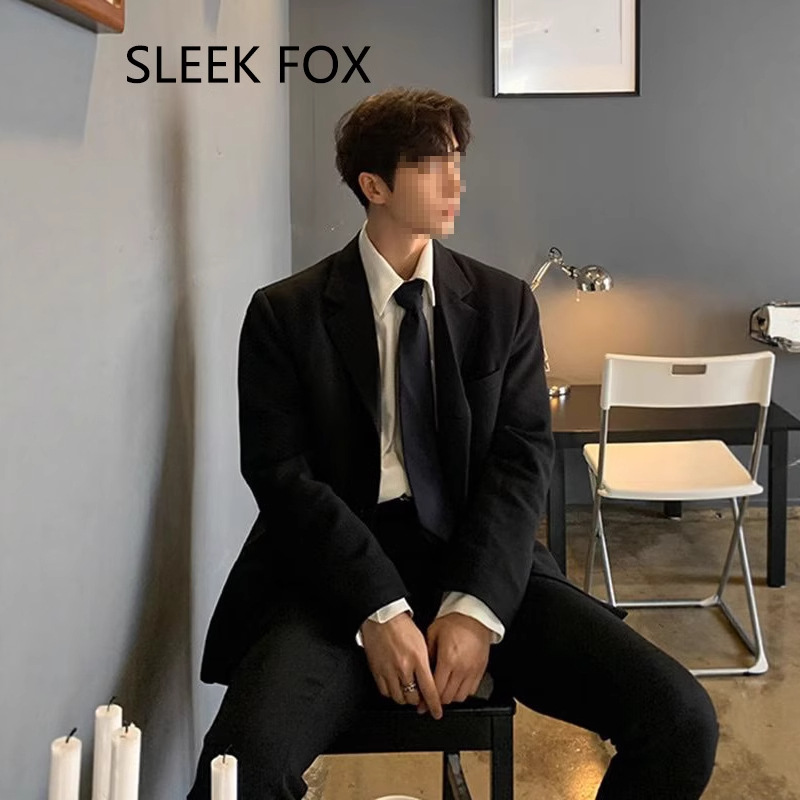 Jas Ukuran Besar Longgar Sederhana Musim Semi Musim Gugur Pakaian Pernikahan Pria Pengiring Pengantin Pria Gaya Korea Trendi Jas Kasual Bisnis