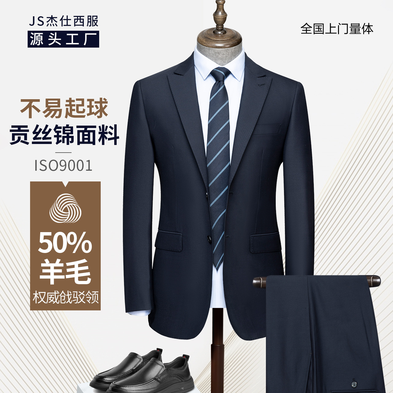 Jas wol pria setelan bisnis kasual setelan pernikahan mewah setelan pengantin pria anti kusut sutra brokat